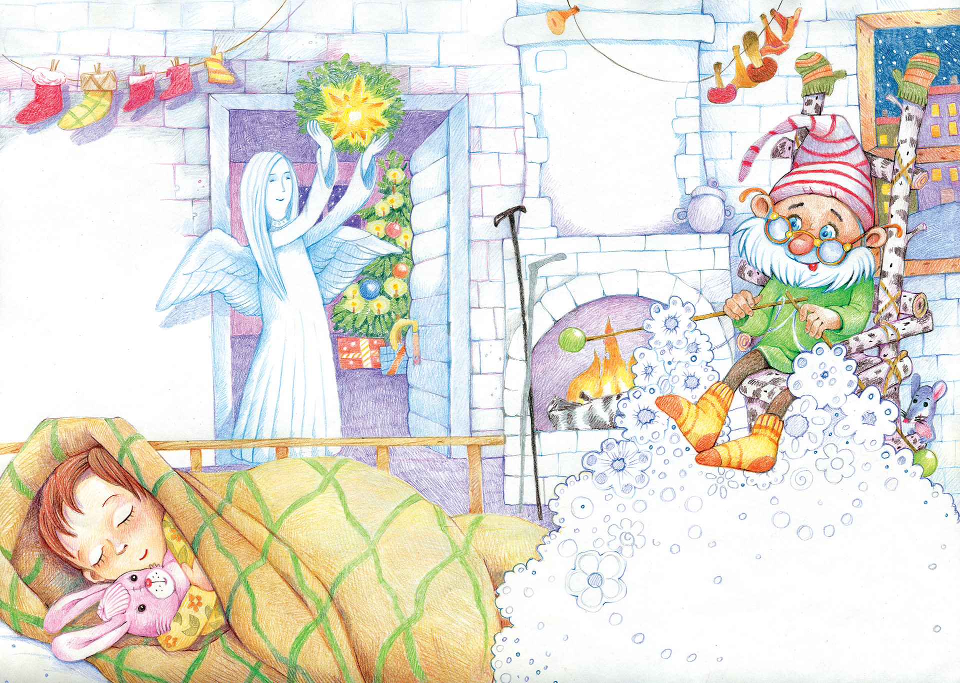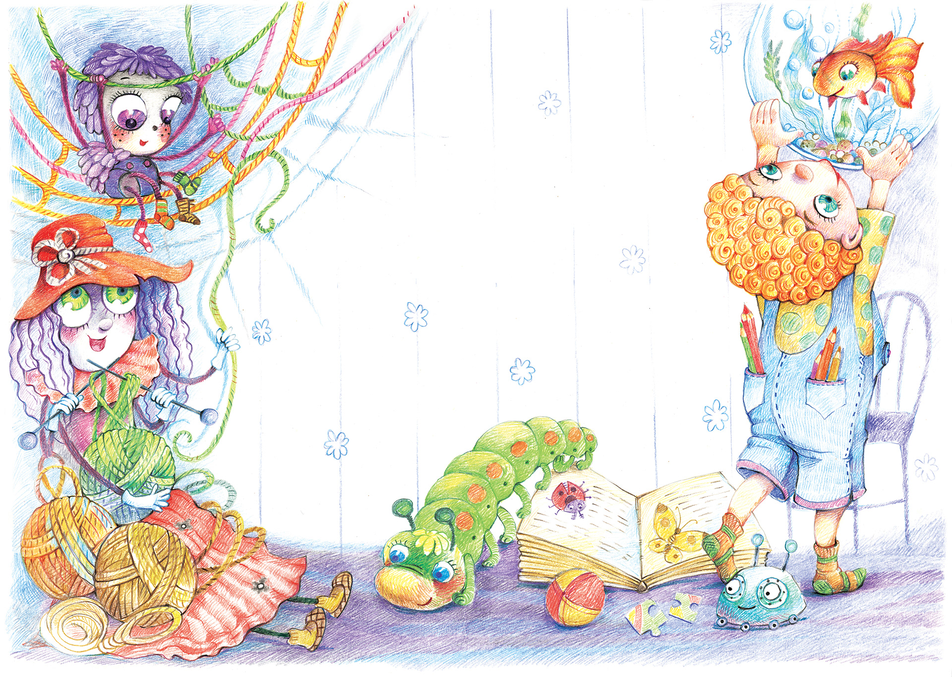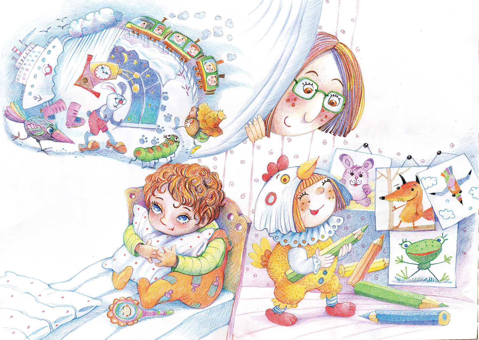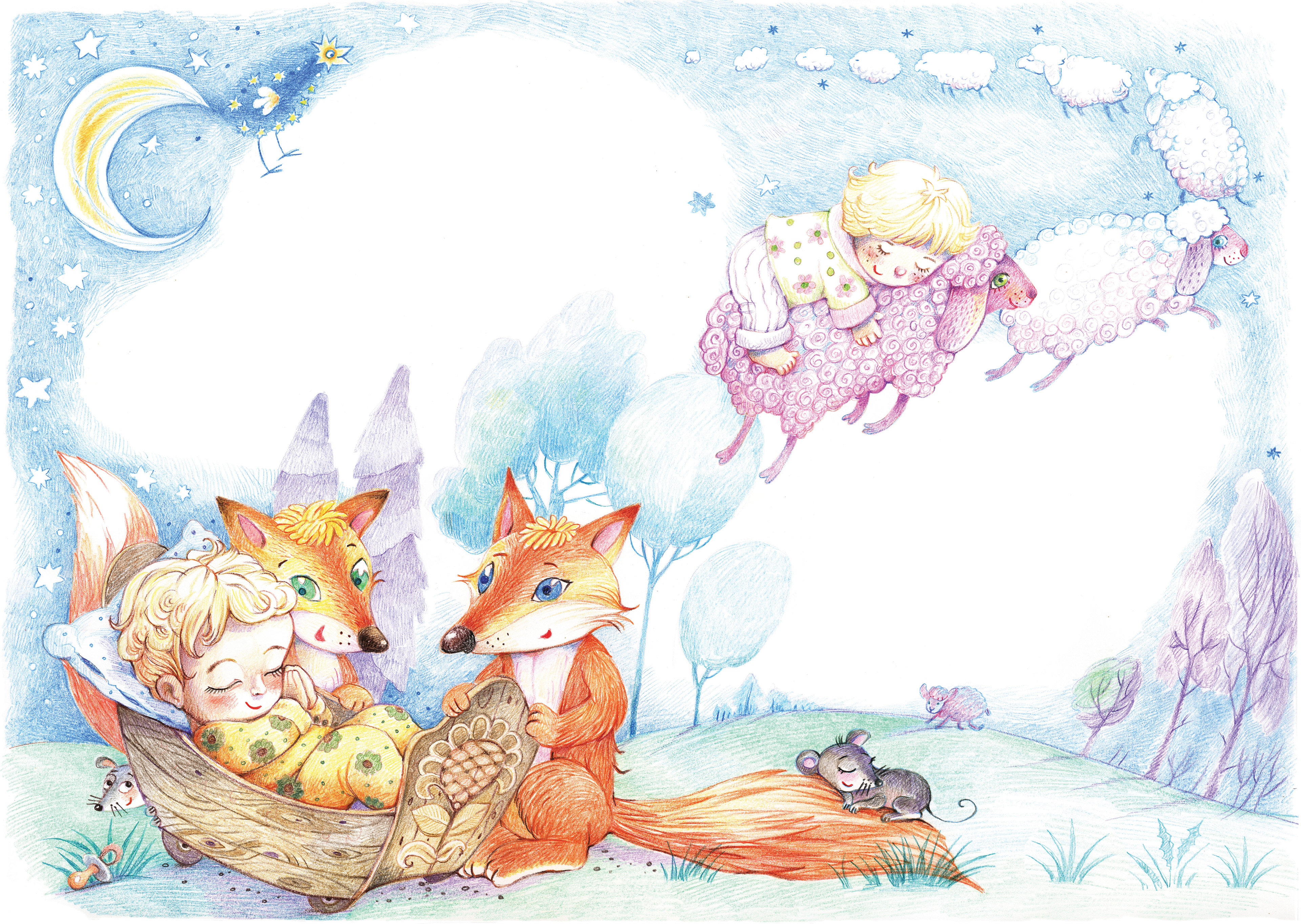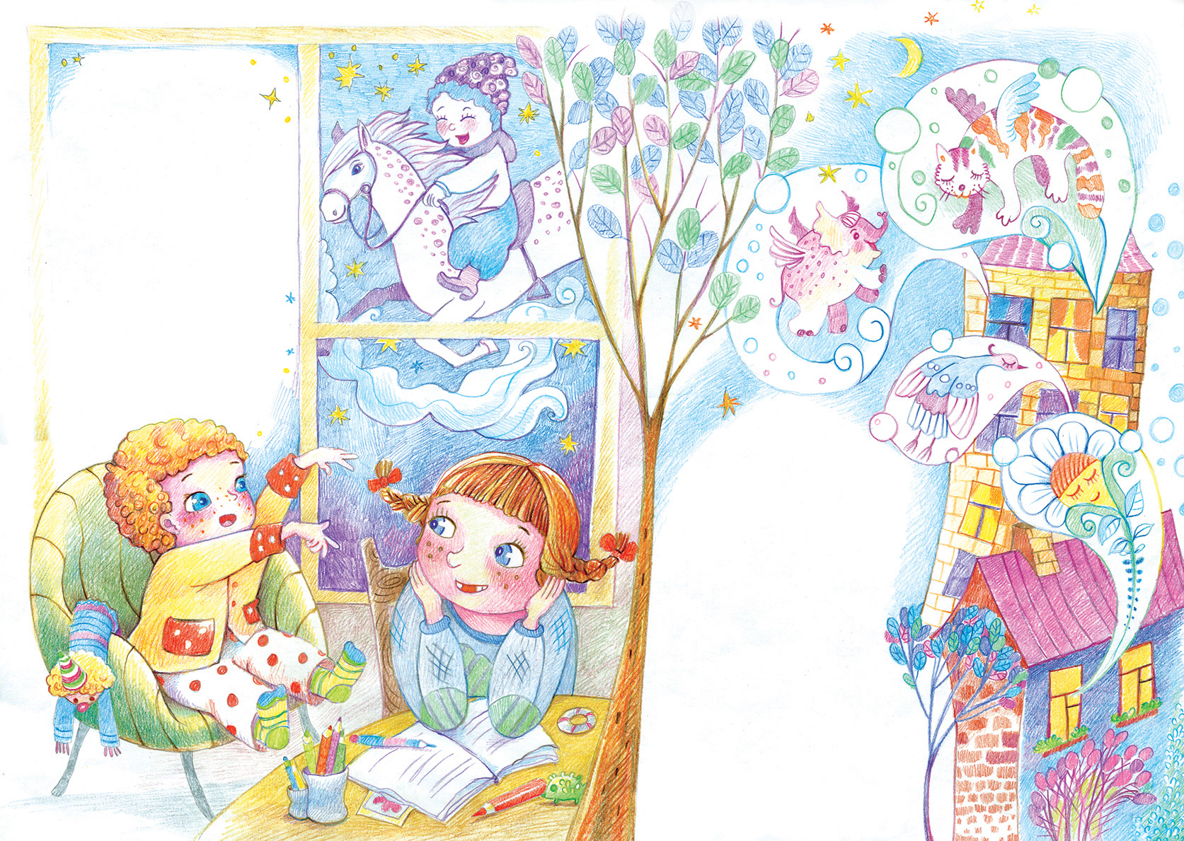 Illustrations to the poems by Vera Pravotorova. Drawings are made with colored pencils.